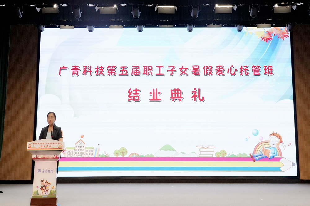 8月17日,广东广青金属科技有限公司第五届职工子女暑假爱心托管班结业典礼在公司办公楼礼堂举办。阳江市总工会党组成员、副主席程喜悦,阳江高新区总工会主席阮广渊,广青科技党委副书记、工会主席王大庆,以及职工家长和子女250多人参加结业典礼。