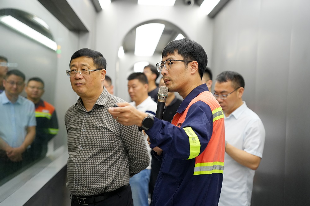 在青拓新材料项目现场,孙勇伟详细介绍了该项目的建设情况、工艺流程、产品优势及市场前景。一行人实地观摩了从不锈钢厚板坯到不锈钢卷的生产流程,陈亦军一行对高性能不锈钢宽板及配套项目的智能化生产优势给予了高度评价。