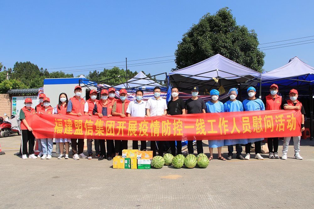 为关心关爱一线抗疫人员,展现公司的良好形象,7月13日下午,福建盟信公司副总经理孙朝晖带领公司志愿者们深入周宁县东门隔离点、方舱隔离场所、高速路口疫情防控检查点开展了慰问一线疫情防控工作人员活动。