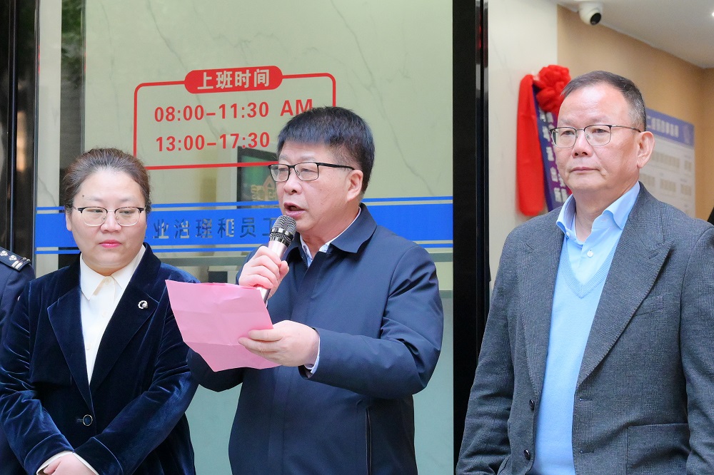 仪式上,陈庆科发表致辞。他表示,企业治理与员工服务中心的建立,是公司对安保工作重视与对员工关怀的体现,也是对社会责任的践行。他强调了企业安保治理与员工服务在集团发展中的重要性,并对未来工作提出了期望和要求。