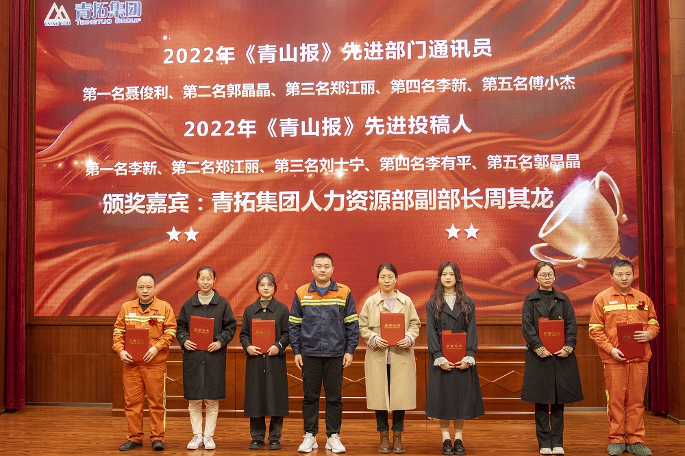 1月13日下午,青拓集团有限公司2022年度总结暨先进表彰大会在集团报告厅举行。集团行政总经理钟盛江、副总经理陈庆荣,jinnianhui今年会绿水部副总经理叶启冬及各部门部长出席会议。公司级先进集体代表、先进个人、先进部门通讯员及投稿人共50余人参加。